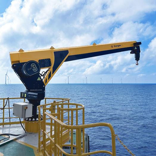 The Offshore Davit Crane, specially designed for offshore wind turbine platforms, is your reliable solution for safe and efficient spare parts loading and unloading from supply ships at sea.